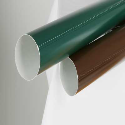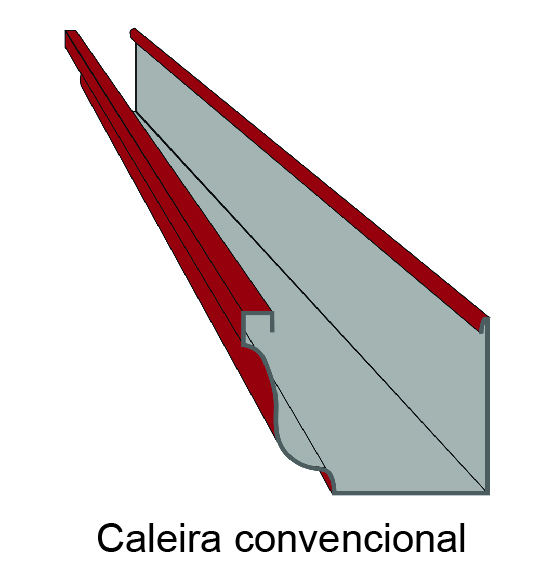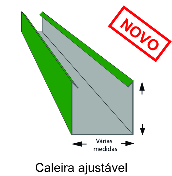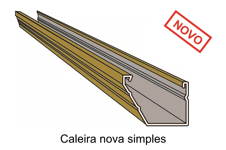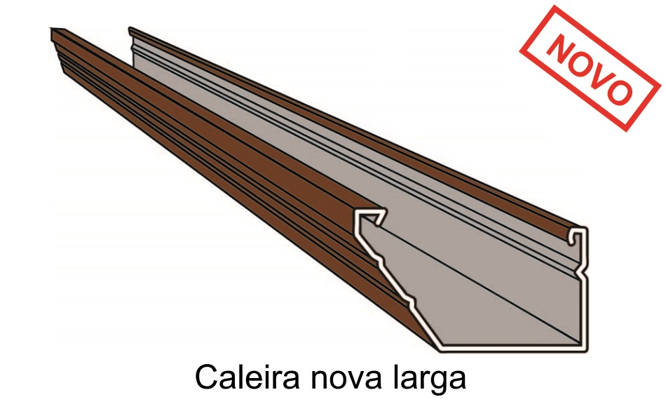 Sete modelos de caleiras, três modelos de descarga em várias cores. Todos os acessórios e máquinas necessárias para o fabrico e aplicação de caleiras contínuas.